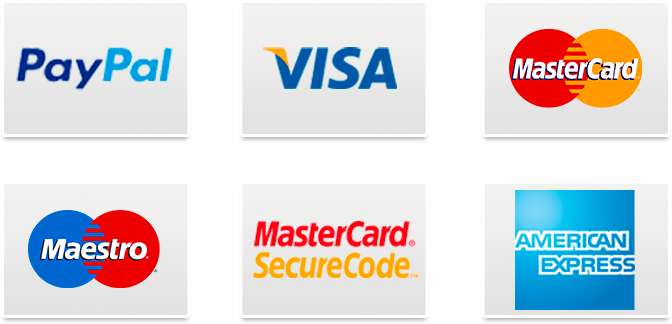 Accettiamo tutti i seguenti metodi pagamento. Inoltre è possibile acquistare tramite bonifico anticipato o contrassegno.