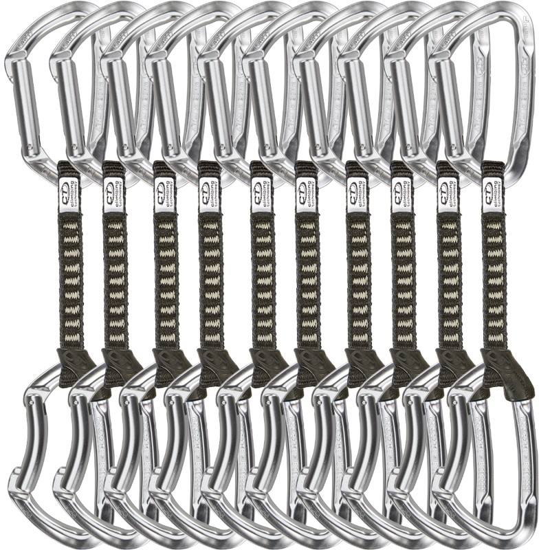 Fettuccia in dyneema da 12 cm (res. 22 kN) e due moschettoni modello Lime(Resistenza asse maggiore: 23 kN, Resistenza asse minore: 8 kN, Resistenza leva aperta: 8 kN). Provvisto di fermamoschettone Fixit. Peso: 90 g