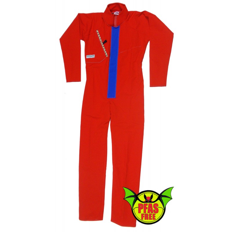 The huge advantage of using a bi-elastic caving suit is that you have maximum freedom of movement. A suit made with a bi-elastic fabric can be very close-fitting, being the movement guaranteed by the stretch of the fabric.Therefore, it will not be necessary to wear suits one or two sizes larger in order not to feel clumsy in movement, risking getting stuck entangled in every little roughness in the tight passages. All of this will most likely change the way you move in a cave. Two types of fabric are available. A light one for those who want maximum freedom - SUPERPLUTO - and a heavier one for those who want to feel more protected- SUPERCARONTE - Both fabrics are woven with the "rip-stop" method, and this makes them very strong. Even when you rip them, the holes don't get bigger. The heavy fabric is almost indestructible, "suit-breakers" speleo-proof... The resin finish is the same in both suits. Heavy fabric being thicker will absorb more water when it gets wet. SuperCaronte is slow to dry, the SuperPluto, on the other hand is very fast. The size of the suits is calculated by measuring the chest under the armpits: chest (cm) 82=XXS, 88=XS, 94=S, 100=M, 106=L, 112=XL, 118=XXL, 124=XXXL Fabric: double stretch Cordura with breathable coating. Two large pocket with Velcro closure: an internal and a external one. Weight: 1250 g ( size M)