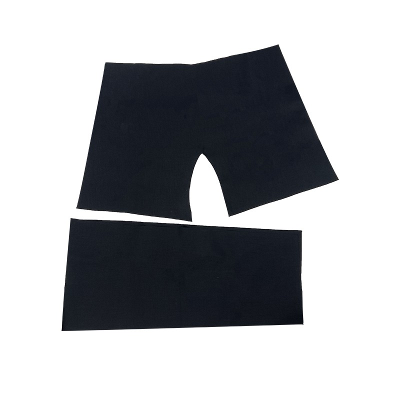 Kit composto da tre spezzoni di cordura nera adatti per la riparazione del fondo e delle ginocchia di una tuta speleo. I rinforzi vanno sagomati e cuciti.
