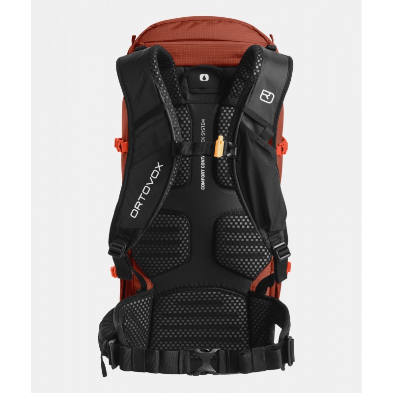 Capacità: 30 l. Peso: 1100 g. Tessuto: Poliammide 210 D HIGH TENACITY: 75% poliammide (riciclata) + 25% poliestere. Molto robusto senza sacrificare il peso. Zaino leggero e confortevole, adatto per escursionismo e alpinismo, per uscite di uno o due giorni. La costruzione essenziale e il design pulito lo rendono perfetto all'utilizzo in parete, mentre la presenza di cinghie laterali, tasca anteriore semiaperta, zip di accesso lungo tutto il perimetro ne fanno uno zaino versatile anche per l'escursionismo. Le cinghie laterali di compressione possono essere unite sul davanti per il trasporto delle racchette da neve o della tavola da Snow. Il resto dell'attrezzatura può essere riposta nella patella dello zaino, nello scomparto interno e nello scomparto inferiore. La rete di fissaggio casco da fissare sulla patella dello zaino, il fissaggio per i bastoncini, il sistema di fissaggio degli sci (A-Skifix) e i portaborracce completano le caratteristiche concepite appositamente per la montagna. Dotato inoltre di predisposizione per sacca idrica, anellino portachiavi, portaocchiali e taschino sullo spallaccio, taschino sulla cintura, chiusura pettorale con fischietto di emergenza e coprizaino antipioggia. Schienale Comfort Contact semirigido e ventilato grazie ai canali per il passaggio dell'aria, alla rete a coste e alla schiuma perforata sui cuscinetti posteriori imbottiti: confortevole e molto stabile nell'utilizzo tecnico. Gli spallacci larghi ed ergonomici e l'ampia cintura in vita contribuiscono a distribuire il carico in modo uniforme.