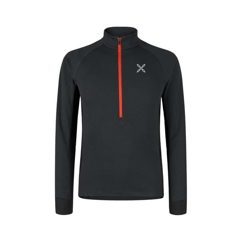 Micropile manica lunga con mezza zip, in Thermal Grid (180 g/mq), pile leggero termico garzato sul rovescio, con banda in elasticizzato light sotto ascella. Trattamento antibatterico Sanitized®. Capo ideale per sci alpinismo, alpinismo e attività outdoor. Peso: 250 g