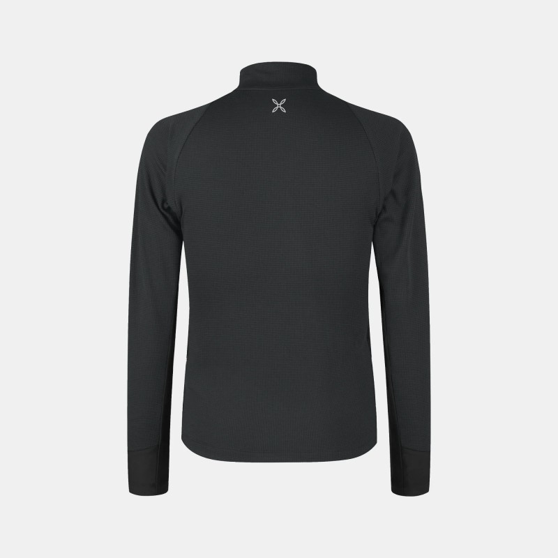 Micropile manica lunga con mezza zip, in Thermal Grid (180 g/mq), pile leggero termico garzato sul rovescio, con banda in elasticizzato light sotto ascella. Trattamento antibatterico Sanitized®. Capo ideale per sci alpinismo, alpinismo e attività outdoor. Peso: 250 g.