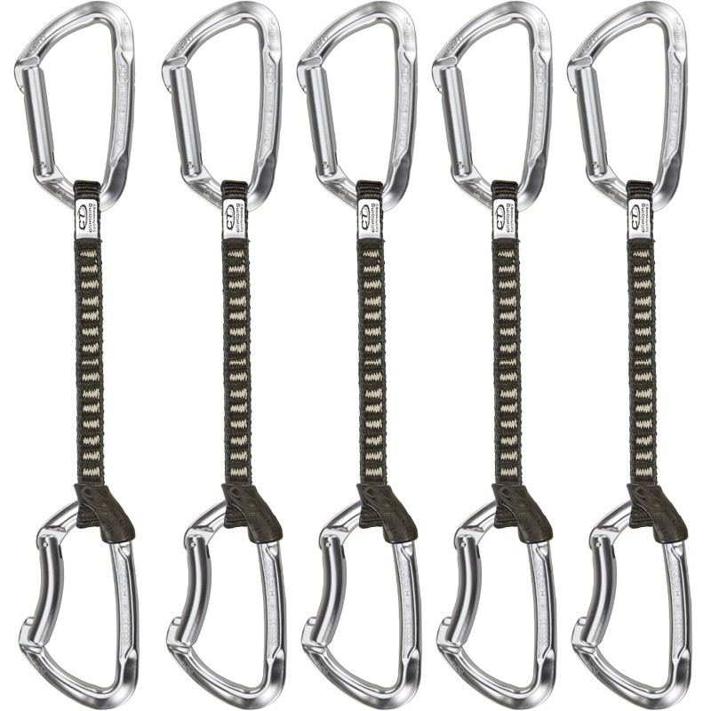 Fettuccia in dyneema da 17 cm (res. 22 kN) e due moschettoni modello Lime (Resistenza asse maggiore: 23 kN, Resistenza asse minore: 8 kN, Resistenza leva aperta: 8 kN). Provvisto di fermamoschettone Fixit. Peso: 92 g