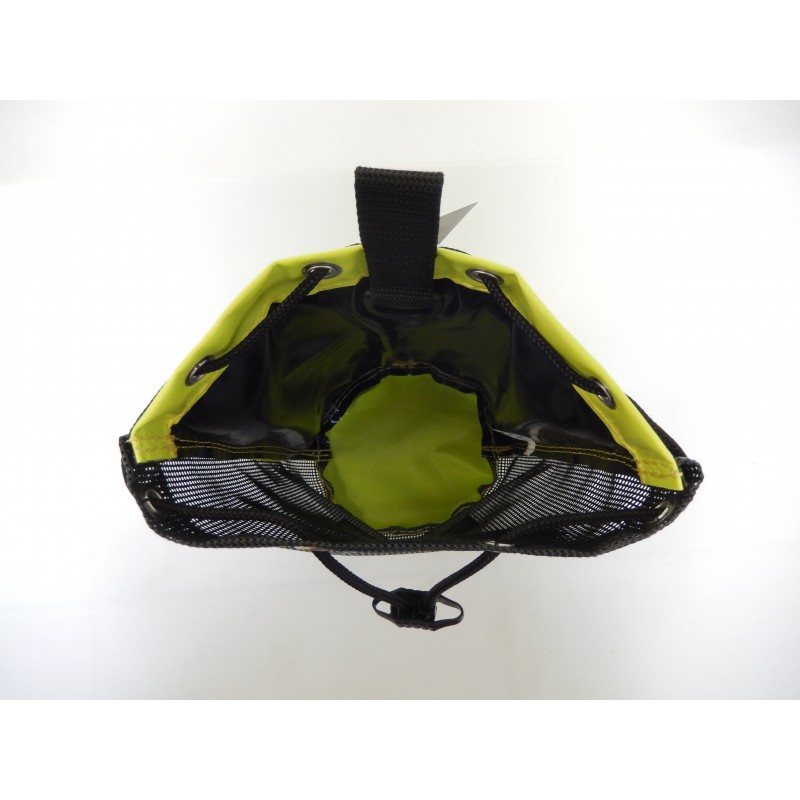 Sacchetto persnale per canyoning in PVC 1100 dTex 650 g/m² con inserto in schiuma galleggiante. Grande superficie realizzata in rete a maglia fine per garantire la fuoriuscita dell'acqua senza comprometterne la resistenza. Un anello interno per fissaggio corda o materiale. Può contenere 25 metri di corda da 8,5 mm. Chiusura con cordino e tanka. Altezza: 29 cm, altezza 15 cm. Capacità 5 l. Peso: 210 g.