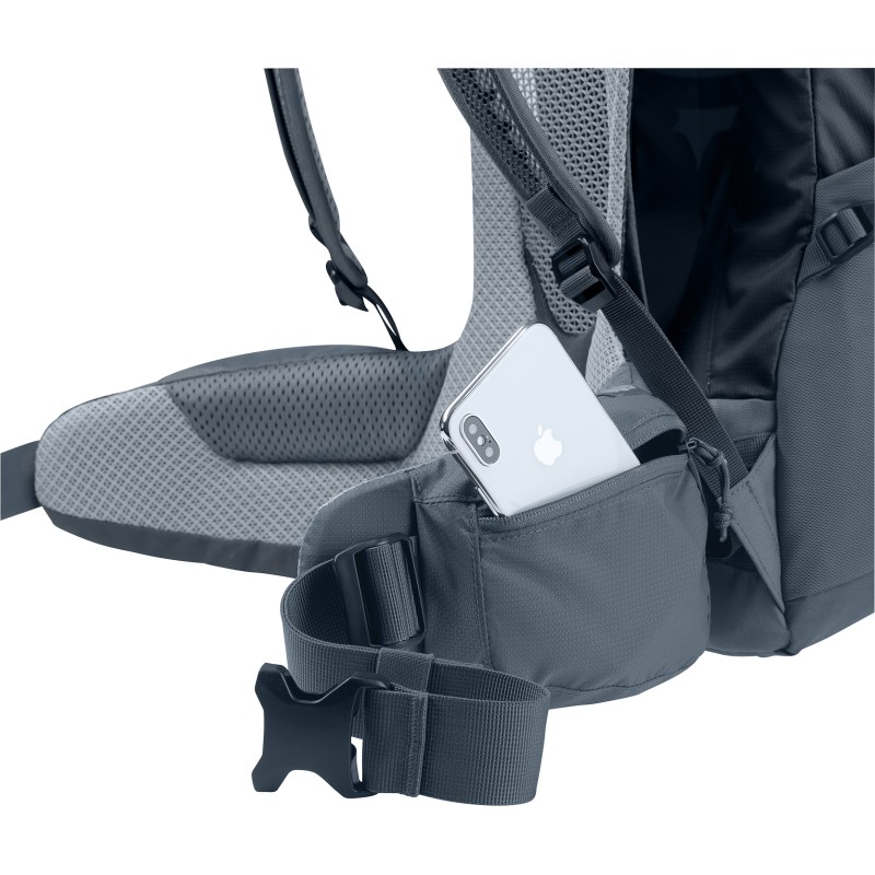 Capacità: 40 L. Peso: 1620 g. Dimensioni: HxLxP = 65x32x24 cm. Tessuto: 210D PA RECYCLED (il 50% del filato viene utilizzato da materie prime riciclate), PES da 600 D intessuto con un filato in poliestere da 600 denari e con rivestimento in PU di elevato spessore, materiale antistrappo e leggerissimo. Caratteristiche: Zaino per escursionismo e trekking di 1 o 2 giorni. Innovativo schienale "Aircomfort Sensic Pro" che garantisce la massima ventilazione posteriore grazie all'innovativa rete. Inoltre, le alette dei fianchi mobili VariFlex ECL con elementi ergonomici imbottiti consentono un trasporto a risparmio energetico. Due tasche laterali a soffietto, due tasche laterali e una frontale in mesh elastica, una tasca superiore, due taschine con zip sulle alette lombari, spallacci anatomici, porta piccozza e porta bastoncini. Doppio volume con accesso inferiore, sacca per camel-bag, coprizaino integrato, anelli di fissaggio per il portacasco (portacasco non compreso nella fornitura).